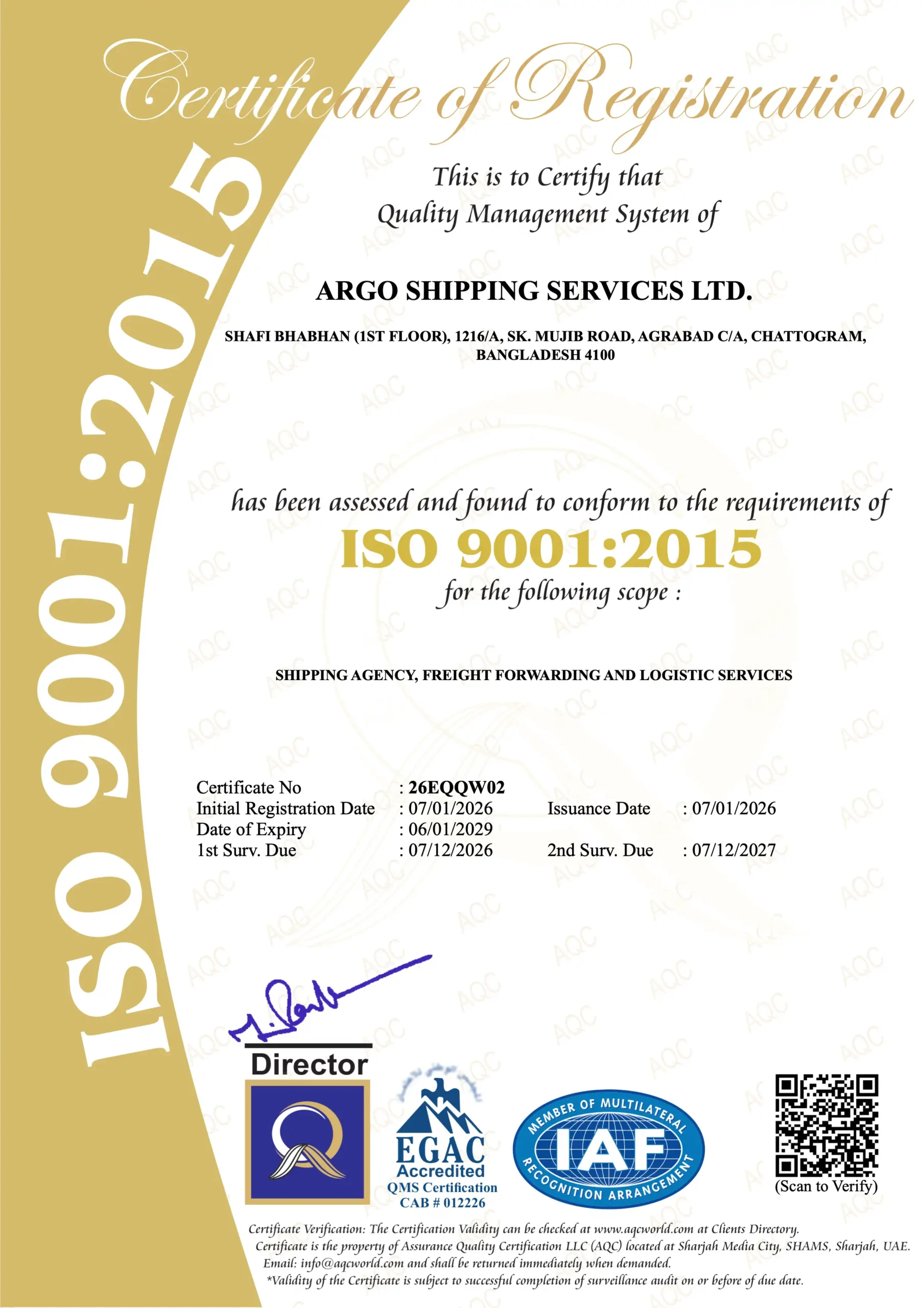 ARGO Shipping Services Ltd., your trusted partner in seamless logistics solutions. We take immense pride in announcing that our commitment to excellence has been recognized through our ISO 9001:2015 certification.